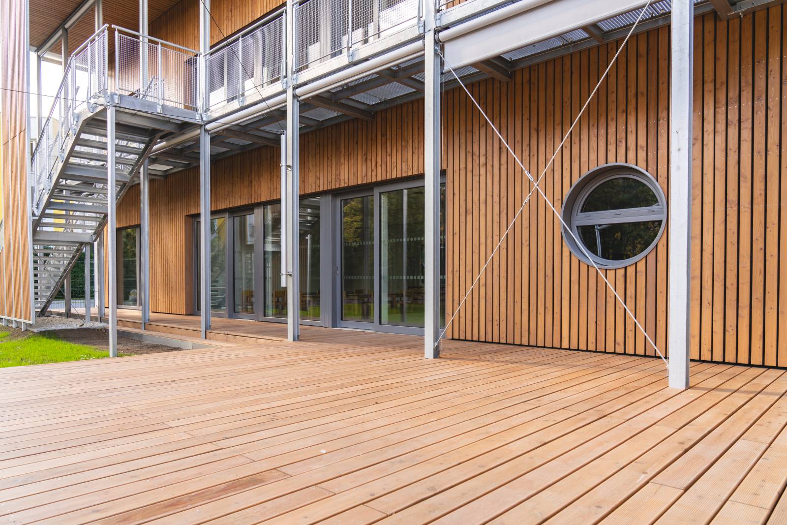Nová moderní budova v sobě ukrývá četná zařízení sloužící k jejímu ekologickému a ekonomickému provozu. Jde především o tepelná čerpadla, panely FTV, jejichž výkon je určen pro potřeby objektu, případně i areálu. Stavba splňuje požadavky na nulový dům (stavba s nulovými emisemi) s téměř nulovou spotřebou energie. Dešťové vody jsou jímány na pozemku budovy a dále využívány k zálivce travnatých ploch.