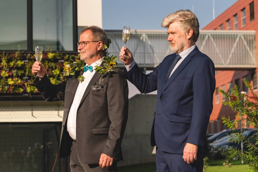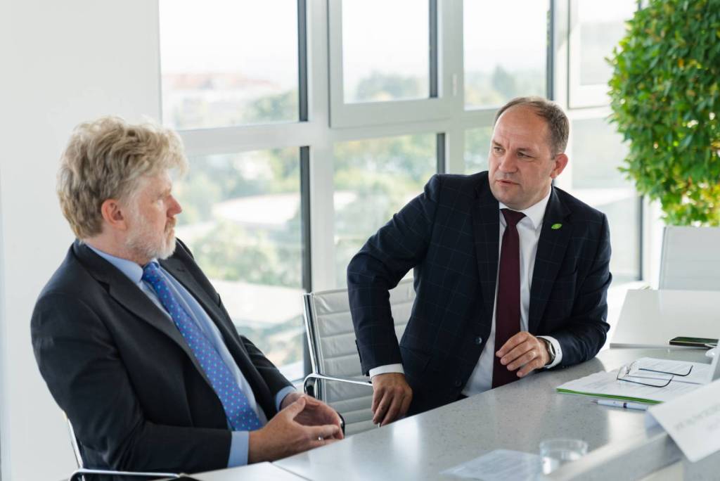 Otevírání Pavilonu environmentálních studií  – rektor Sklenička na snímku s tehdejším děkanem Fakulty životního prostředí Vladimírem Bejčkem