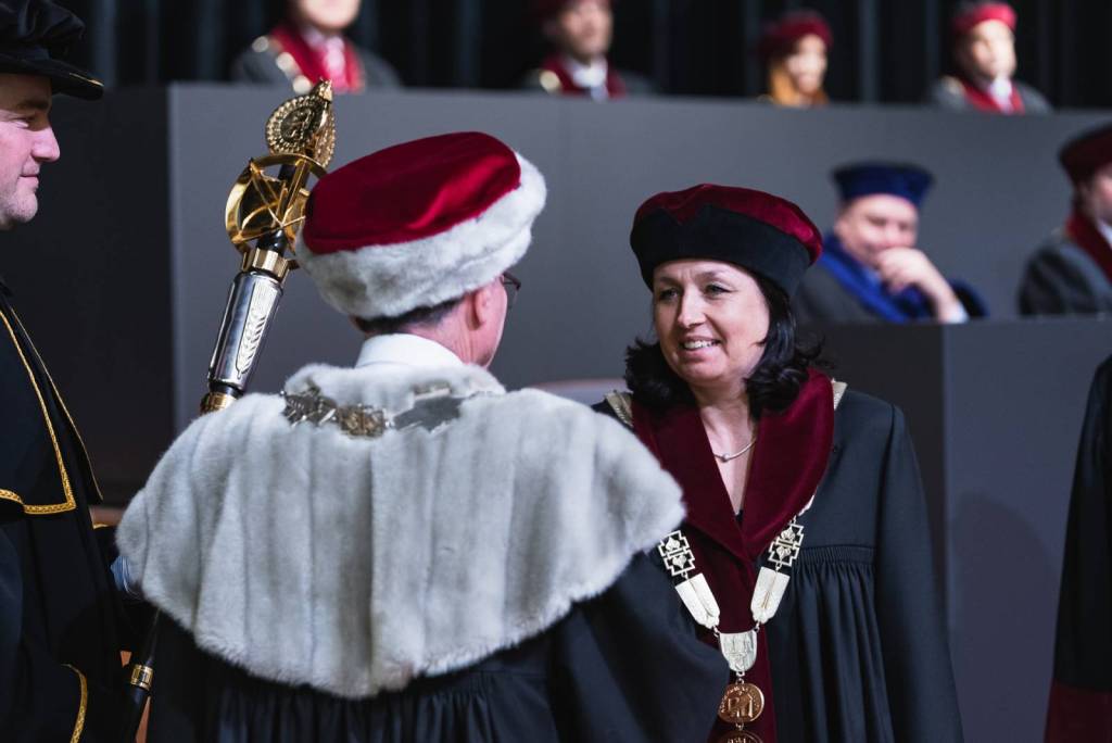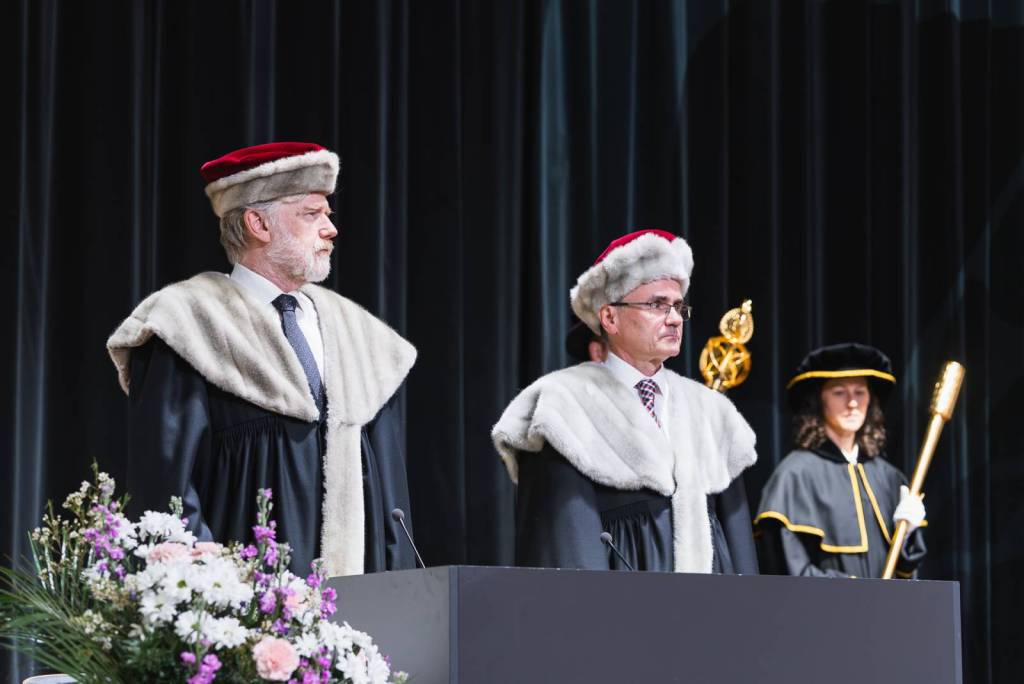 Inaugurační shromáždění bylo také příležitostí k představení nových prorektorů a prorektorek univerzity a k uvedení nově zvolené děkanky FAPPZ profesorky Evy Vlkové a nového děkana Technické fakulty profesora Františka Kumhály do jejich úřadů. Mezi hosty byl i předseda České konference rektorů profesor Milan Pospíšil, který zde vystoupil s pozdravným projevem.