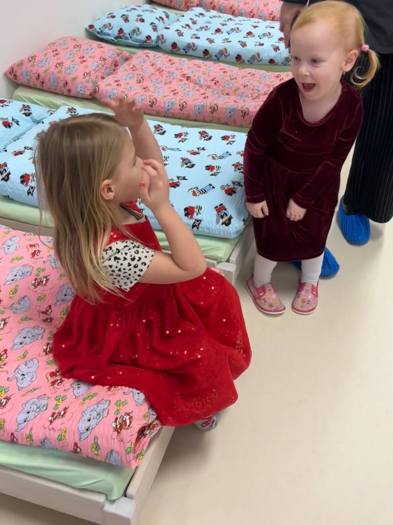 Své služby péče o dítě zde bude univerzita poskytovat prostřednictvím tří nově vybudovaných dětských skupin o celkové kapacitě 66 míst pro děti ve věku od dvou let. Každá dětská skupina bude mít své zázemí v prostorných denních místnostech. Dětem jsou zde k dispozici stavebně oddělené ložnice a barevné šatny, hygienická zařízení a travnatý venkovní prostor. Pro posílení imunitního systému budou moci navštěvovat infrasaunu se solnou stěnou.